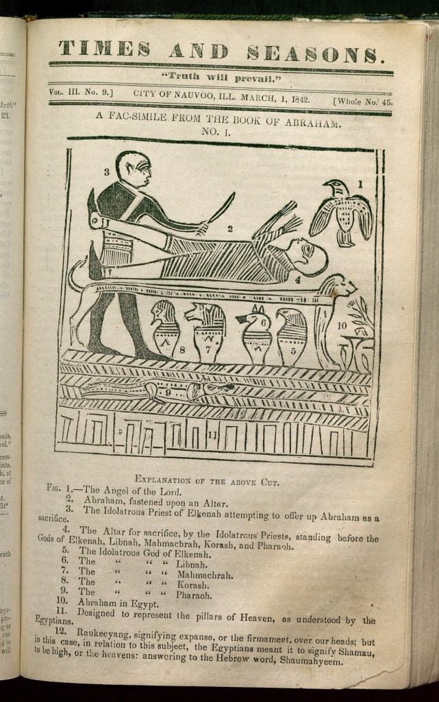 Maar er was ook nog een ander probleem. Vóór het Boek van Abraham heeft Joseph Smith een replica van een afbeelding in de Parel van grote waarde laten opnemen. Deze replica ziet er als volgt uit: